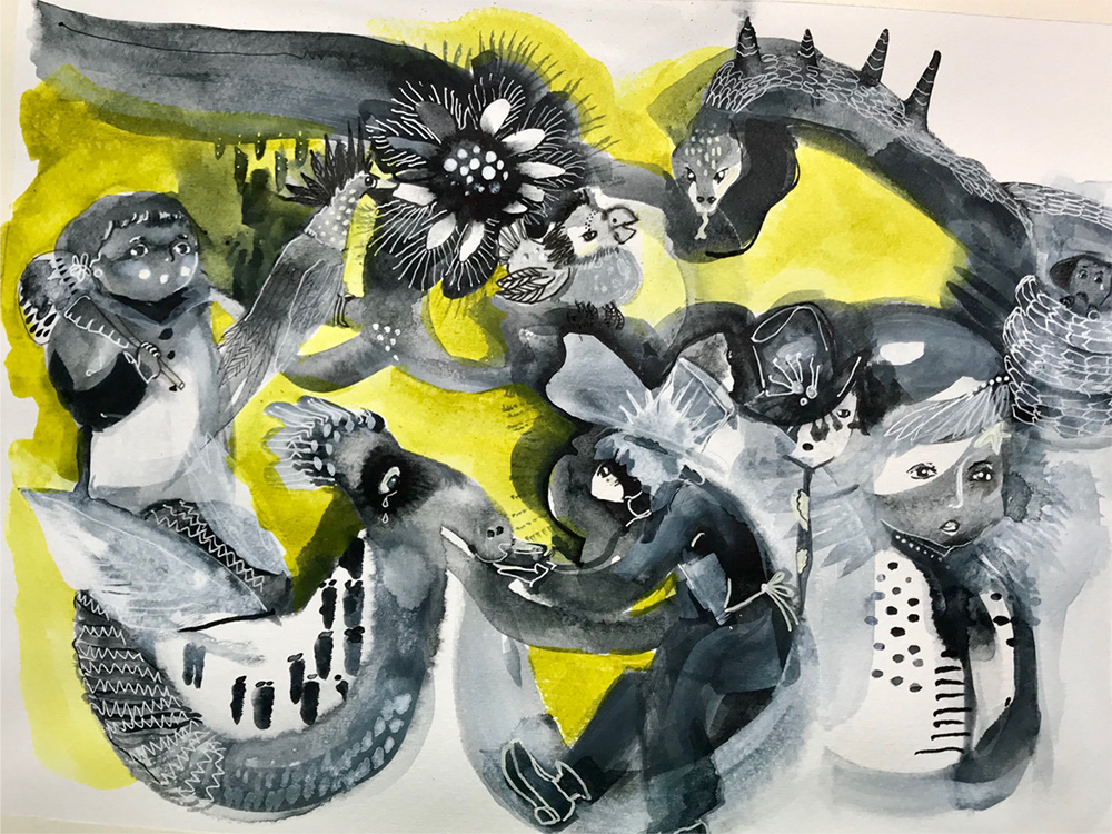 Curious Creatures (Image left.). A modern take on today’s pandemic of emotions.